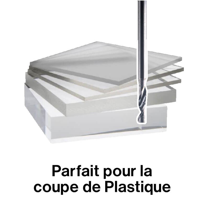 Les réglages de coupe sont des points de départ recommandés. Chaque machine CNC est différente. Testez et ajustez toujours en fonction du tranchant de l'outil, de sa rigidité, du matériau et de la puissance de la broche.