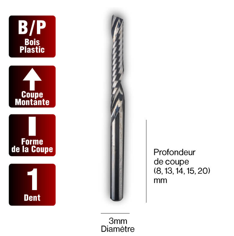 Évacuation des copeaux: La conception en coupe ascendante aspire les copeaux vers le haut et hors de la coupe. Assurez un dégagement suffisant et utilisez un jet d'air comprimé pour les évacuer.