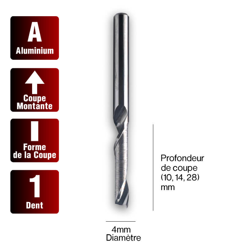 Évacuation des copeaux: La conception en coupe ascendante aspire les copeaux vers le haut et hors de la coupe. Assurez un dégagement suffisant et utilisez un jet d'air comprimé pour les évacuer.