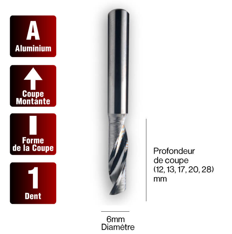 Évacuation des copeaux: La conception en coupe ascendante aspire les copeaux vers le haut et hors de la coupe. Assurez un dégagement suffisant et utilisez un jet d'air comprimé pour les évacuer.